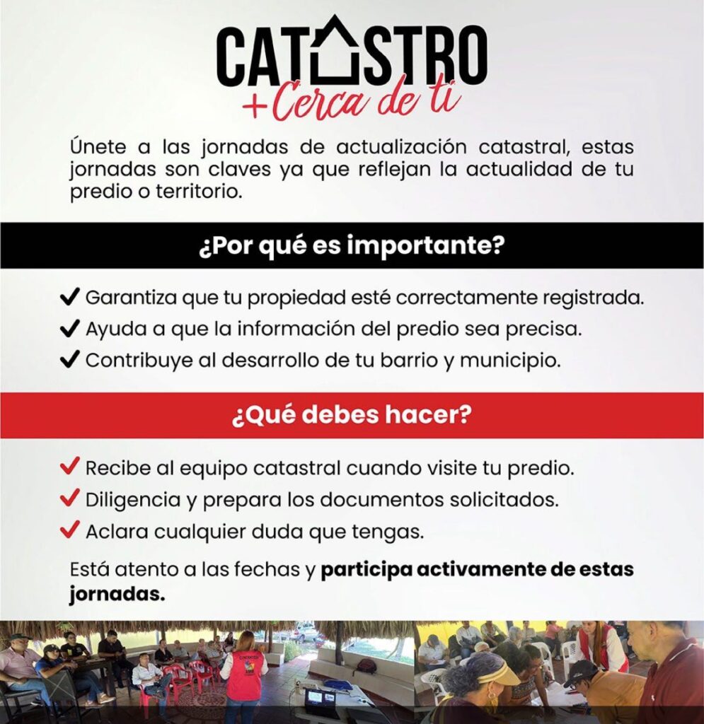 «Seguimos acercando los servicios catastrales a tu comunidad. Participa en las jornadas de actualización catastral y contribuye al desarrollo del municipio. Participa en las jornadas de actualización catastral y contribuye al desarrollo del municipio» dijo CatastroJuande Acosta