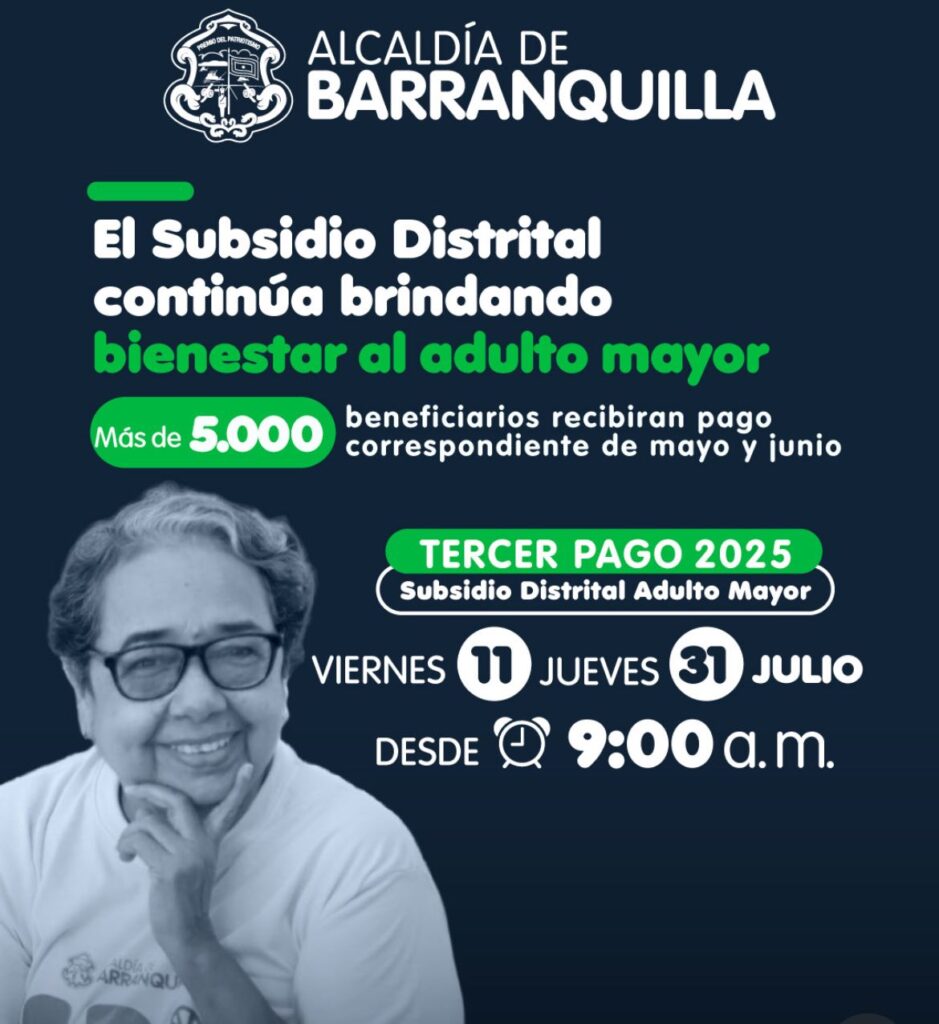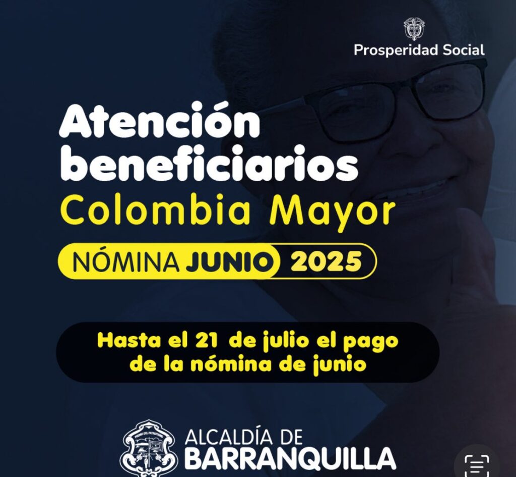 HASTA EL 21 DE JULIO, LOS BENEFICIARIOS DEL PROGRAMA COLOMBIA MAYOR EN BARRANQUILLA PODRÁN CONSULTAR EL PAGO DEL MES DE JUNIO EN LINEA.