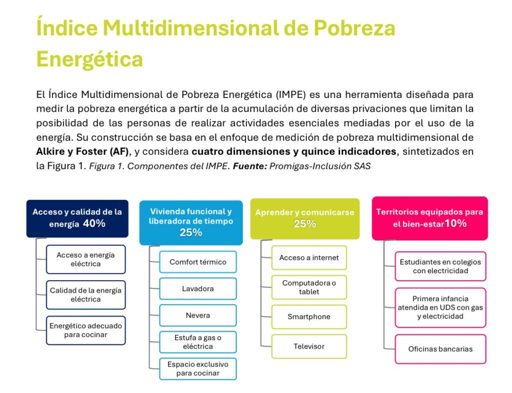 Promigas y su Fundación Promigas presentan la III edición del Índice Multidimensional de Pobreza Energética (IMPE), una herramienta desarrollada con la firma Inclusión SAS para medir la pobreza energética, entendida como una condición en la que confluyen una acumulación de privaciones que limitan la posibilidad de las personas de realizar actividades esenciales mediadas por el uso de la energía.