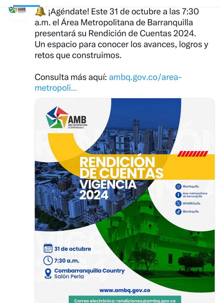 AGÉNDATE PORQUE EL 31 DEOCTUBRE EL AMB PRESENTARÁ RENDICIÓNDE CUENTAS