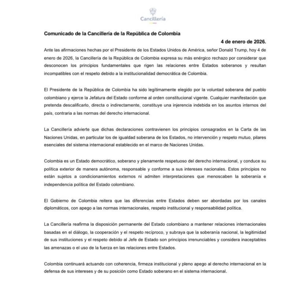 Las declaraciones de Trump, son profundamente irrespetuosas, no solo para el presidente, sino hacia Colombia como Estado soberano y frente a los principios fundamentales del orden nacional.