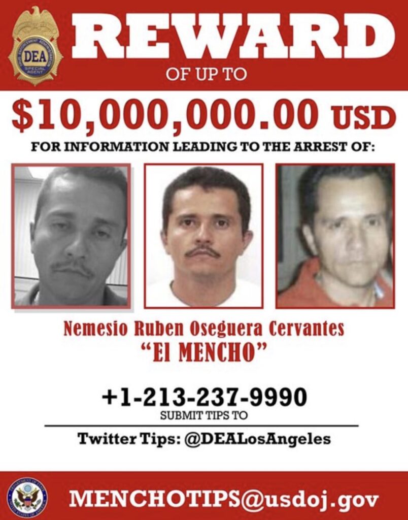 Sobre Nemesio Rubén Oseguera Cervantes, había una recompensa de hasta $10.000.000.00 USD