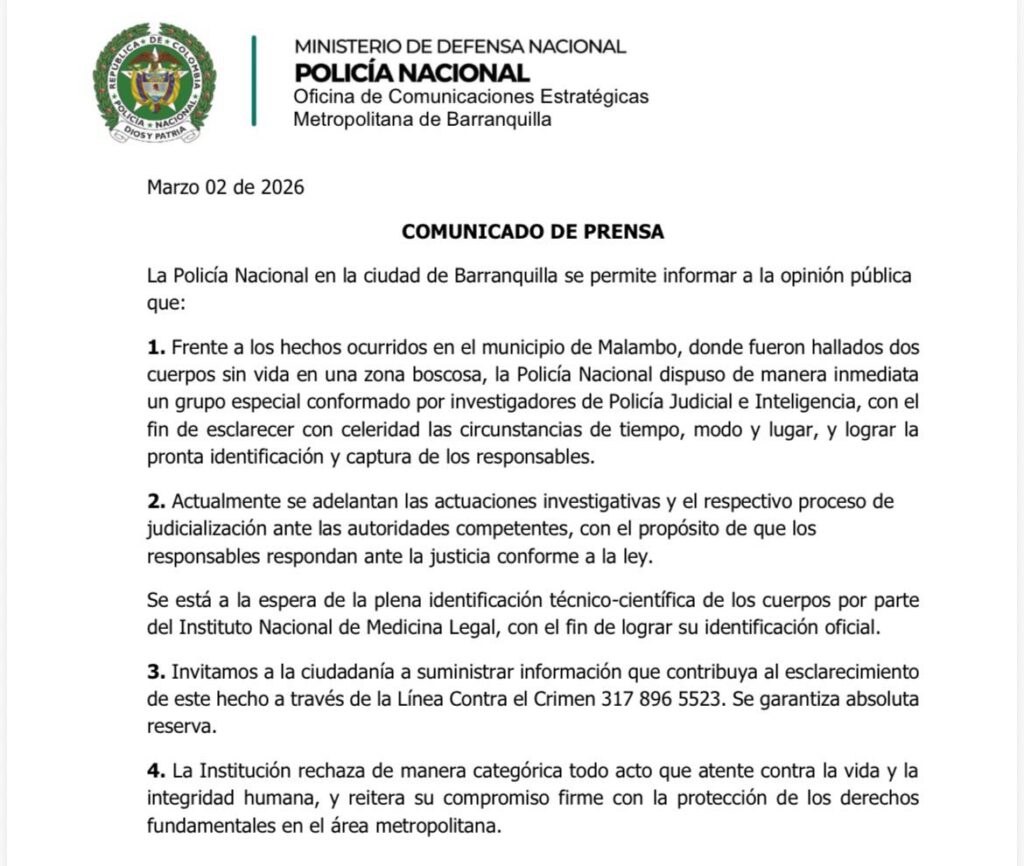 Esta noticia no solo estremece el corazón de las familias de las adolescentes de 14 años, Sheridan Sofía, y de Keyla Nicole Hernández Noriega, de 17 años, sino también de la sociedad. Las jóvenes fueron encontradas enterradas en una zona enmontada cubiertas con troncos, en el barrio Maranatha, del municipio de Malambo, el pasado 28 de febrero.