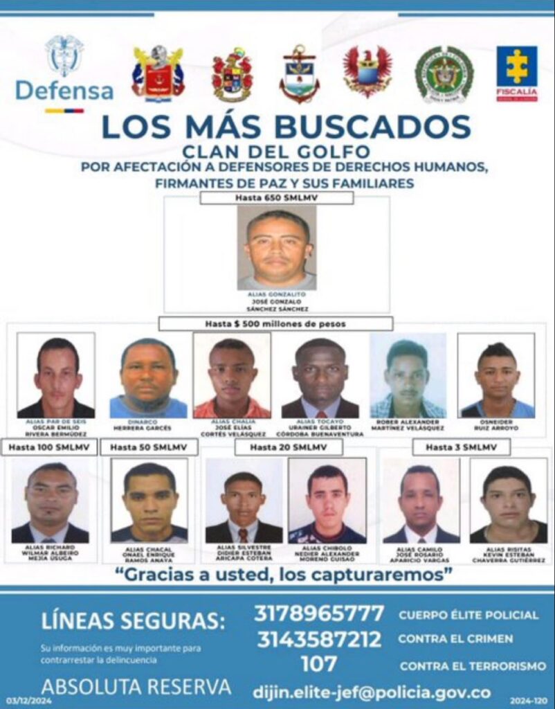 HACÍA PARTE DE LOS MÁS BUSCADOS POR AFECTACIÓN A DEFENSORES DE DERECHOS HUMANOS, FIRMANTES DE PAZ Y SUS FAMILIARES.