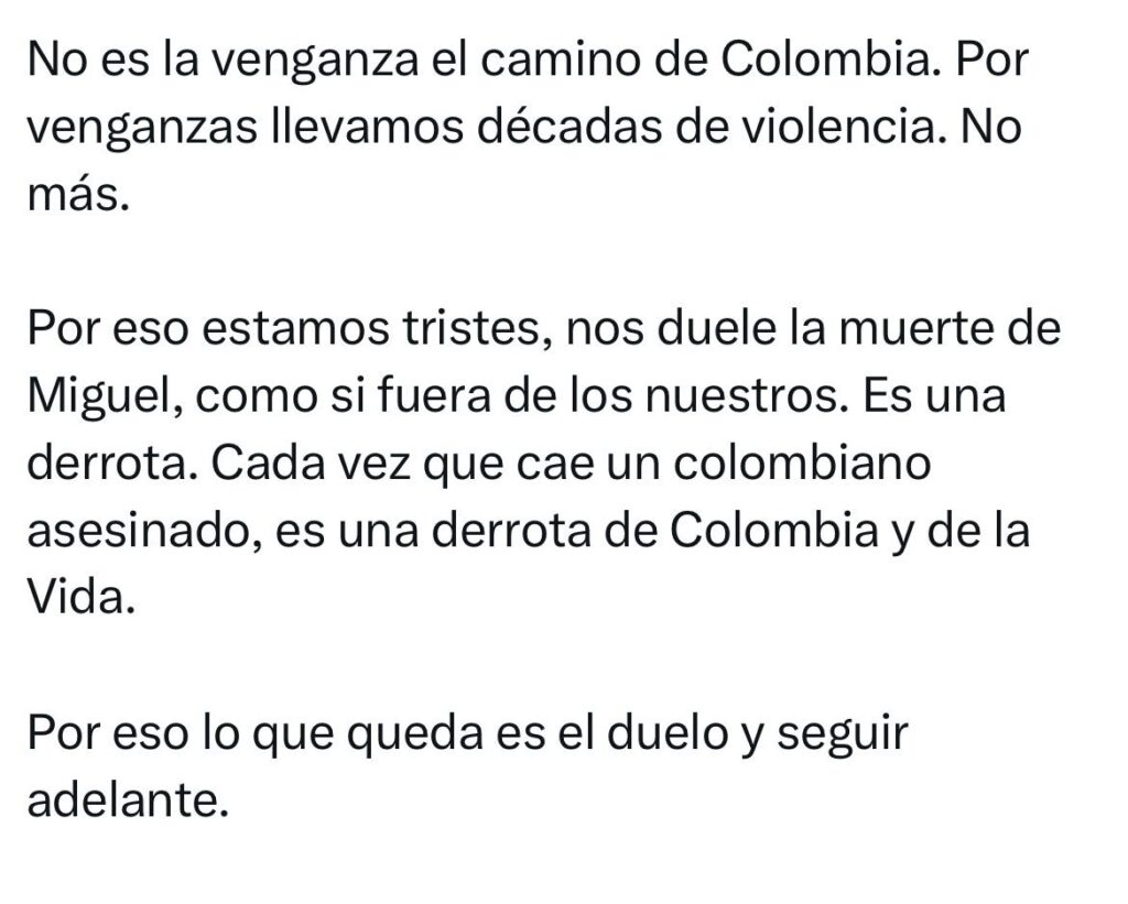«La vida está por encima de cualquier ideología» dijo el jefe de Estado colombiano, en su red social X, donde escribió sobre la violencia política que ha sacudido al país en los ultimos años.