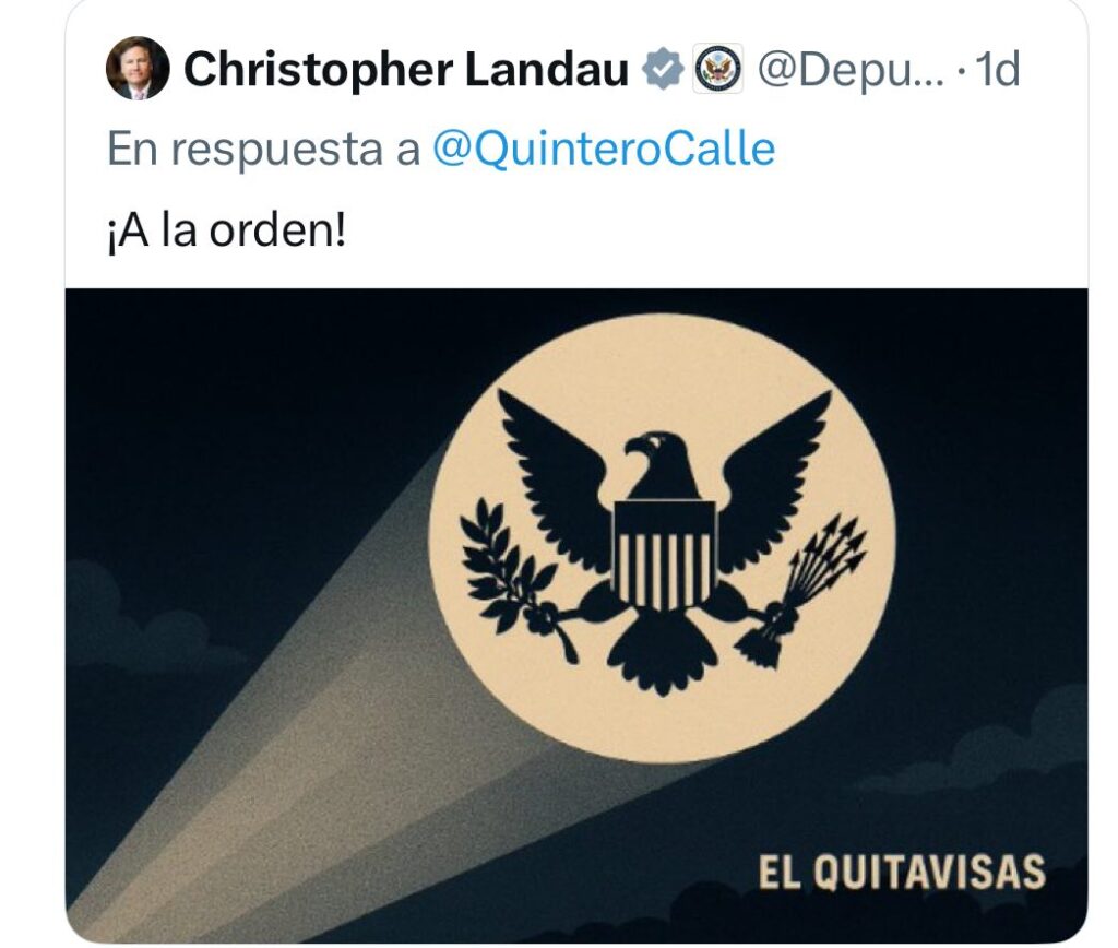 El subsecretario de Estado de los Estados Unidos, Christopher Landau, le respondió a Daniel Quintero «A la orden».