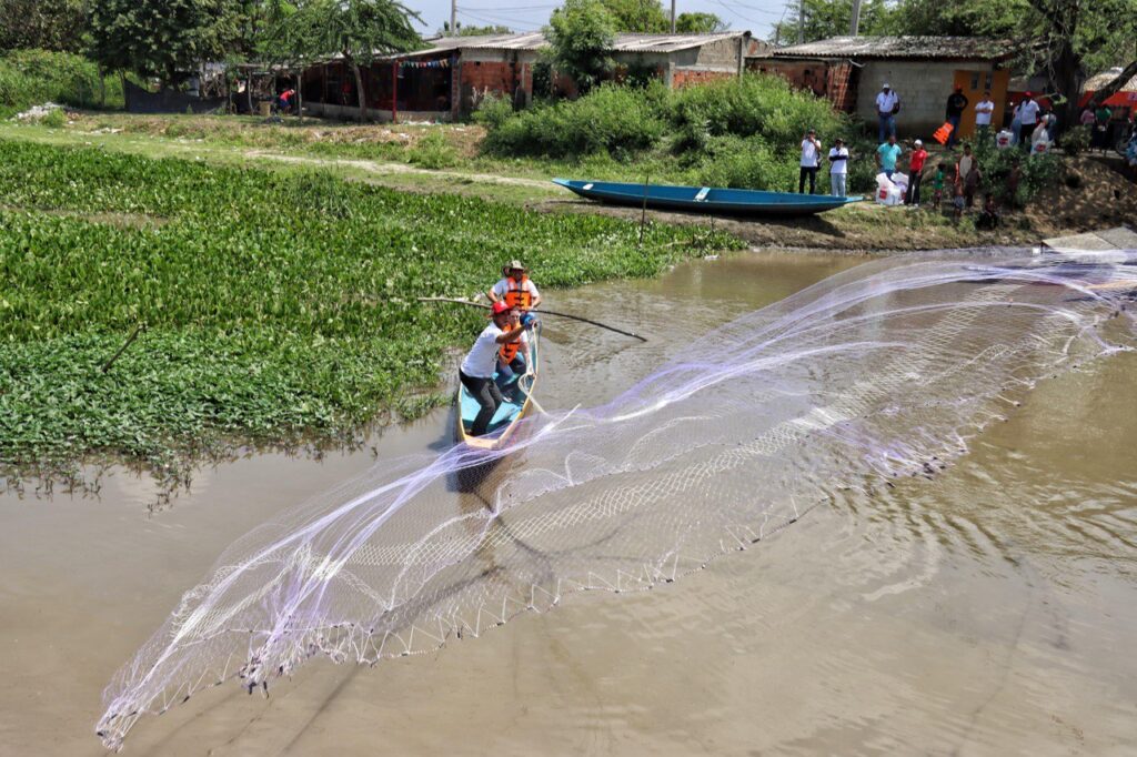 En las compuertas del municipio de Manatí, la Gobernación del Atlántico ratificó su apuesta por la pesca artesanal como eje de desarrollo económico y social, con la entrega de 70 kits de pesca, 20 embarcaciones reparadas y avanza en la entrega de otras 20 canoas nuevas para comunidades del Embalse del Guájaro.