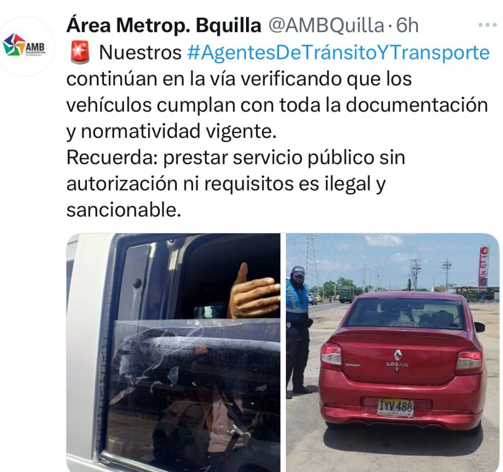 El AMB también trabaja con los AgentesDe Tránsito YTransporte en la vía verificando que losvehículos tengan todo en orden en cuanto a los documentos ya que prestar un servicio público sin autorización, ni requisitos es ilegal y sancionable.