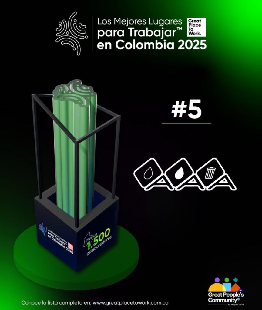 Se destaca también que Triple A se ubicó entre los primeros lugares de las empresas de servicios públicos del país evaluadas por Great Place to Work, reafirmando su liderazgo no solo en calidad de servicio, sino en la forma como gestiona su talento humano.