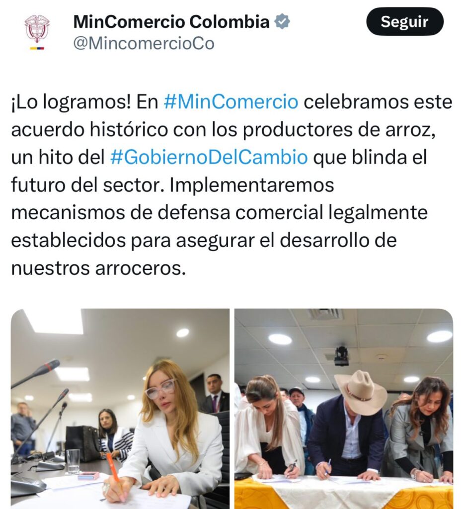 EL ACUERDO HISTÓRICO SE LOGRÓ CON EL COMITÉ NACIONAL DEL PARO ARROCERO, FUE POSIBLE CON LA INTERVENCIÓN DE LOS MINISTERIOS DE AGRICULTURA, COMERCIO, INDUSTRIA Y TURISMO Y EL INTERIOR