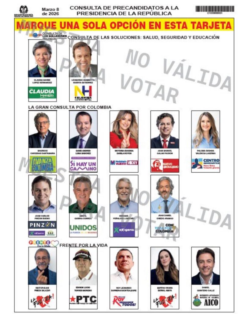 La Registraduría Nacional del Estado Civil llevó a cabo el sorteo donde se definieron las posiciones de las consultas por Colombia, el Frente por la Vida y la de las Soluciones, , asi como la de los los precandidatos a la presidencia de la República para el próximo 8 de marzo de 2026.