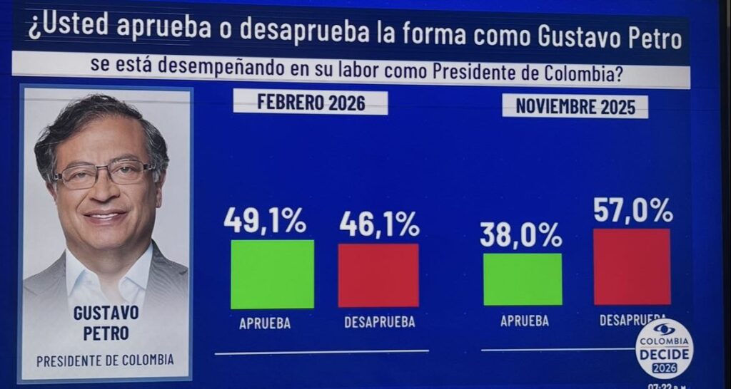 En cuanto al nivel de aprobación del presidente Petro, subió y se encuentra en un 49,1%