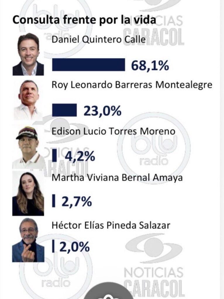 Este es el resultado de la Consulta Frente por la Vida .- Aquí Daniel Quintero triplica a Roy Barreras