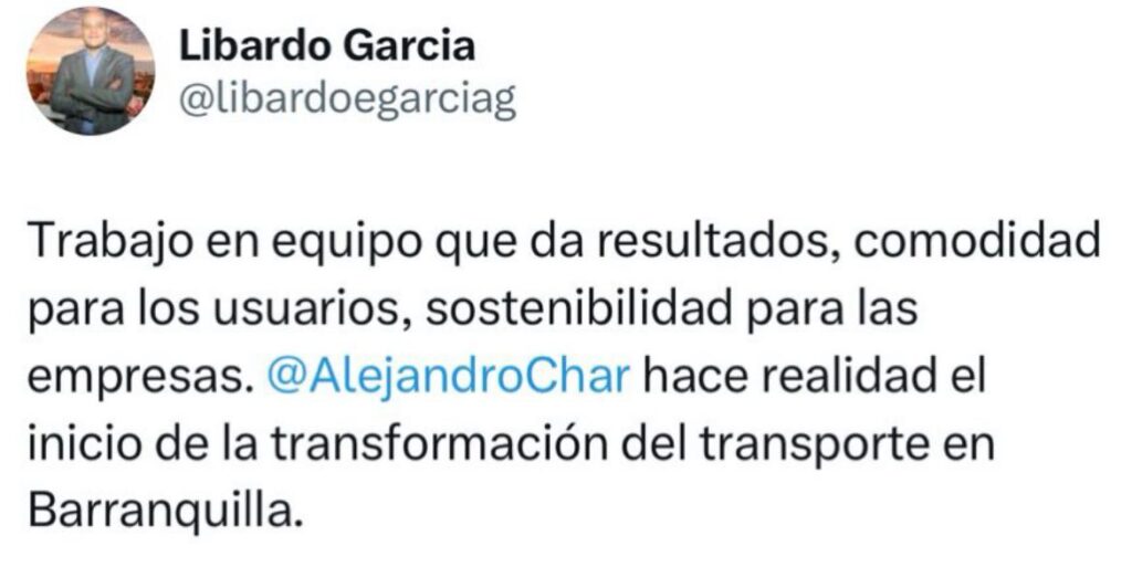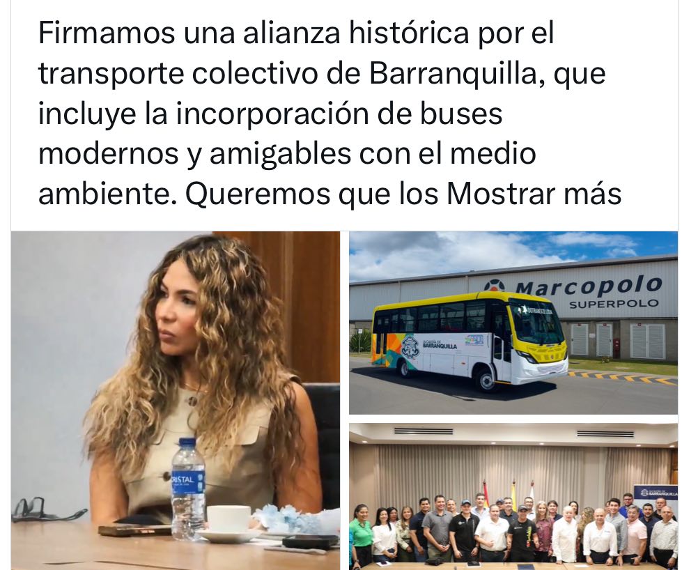 A través de su cuenta de X, el alcalde Char señaló: “¡Renovamos la flota del Transporte Público Colectivo! Este año llegan 240 buses nuevos. Firmamos una alianza histórica por el transporte colectivo de Barranquilla, que incluye la incorporación de buses modernos y amigables con el medioambiente. Queremos que los barranquilleros viajen más cómodos y seguros por nuestra ciudad. Los nuevos vehículos, con capacidad de hasta 75 pasajeros, vienen equipados con: wifi, cámaras, pago electrónico y botones de pánico para la seguridad de todos. Estamos haciendo equipo con el gremio transportador, ¡vamos por más, porque sí se puede!”