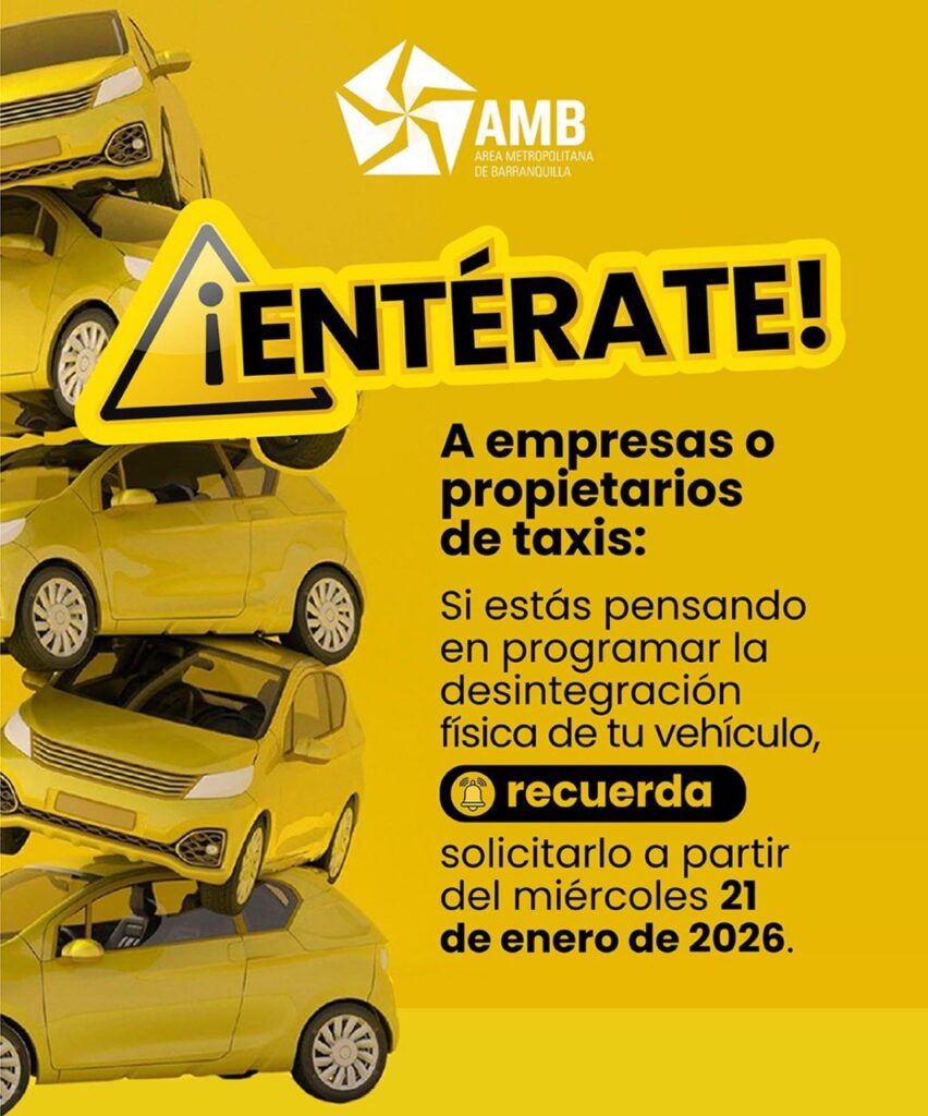 Si piensas programar la desintegración física de tu vehículo, puedes hacerlo desde ahora, solicitándolo al Área Metropolitana de Barranquilla, desde el día miércoles 21 de enero 2026